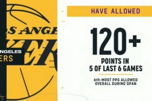 備注:湖人近6場失分為聯(lián)盟第6多