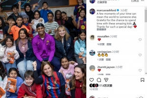 體育資訊12月12日訊 拉什福德參加巴薩基金會(huì)活動(dòng),與孩子們互動(dòng)并合影。