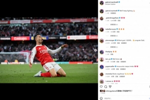 本場(chǎng)比賽馬丁內(nèi)利在替補(bǔ)登場(chǎng)后補(bǔ)時(shí)絕平,賽后他也在社媒曬出滑跪慶祝進(jìn)球照片,配文寫道:“我們i繼續(xù)拼搏!”