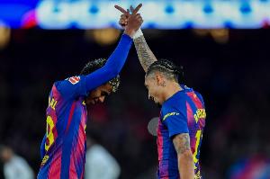體育資訊12月14日訊 西甲第16輪,巴薩2-0奧薩蘇納,本場拉菲尼亞梅開二度包攬球隊(duì)的全部進(jìn)球,還打入一粒精彩遠(yuǎn)射。