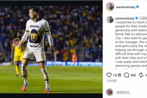 墨西哥美洲獅與拉姆塞解約,拉姆塞社媒寫道:“我想感謝墨西哥人民對(duì)我的友善與慷慨,讓我和我的家人在墨西哥城感受到如此溫暖的歡迎。我還要特別感謝主教練、教練組,尤其是醫(yī)療團(tuán)隊(duì),在我受傷的艱難時(shí)期給予我的幫助。在他們的支持和努力下,我恢復(fù)了狀態(tài),為接下來(lái)的比賽做好了準(zhǔn)備,期待為美洲獅貢獻(xiàn)自己的最好表現(xiàn)。”