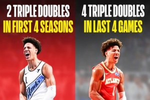 有意思的是,杰倫·約翰遜生涯一共拿到8次三雙,而他生涯前4個賽季才拿到過兩次。而本賽季就拿到了6次,其中更是包含這連續(xù)4場三雙。