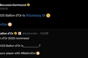 體育資訊9月22日訊 多特官方發(fā)推調(diào)侃,表示吉拉西是2025年的金球獎得主。