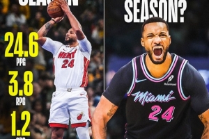 鮑威爾本賽季場均24.6分3.8籃板1.2搶斷,三分命中率43.6%;目前熱火14勝12負(fù),排名東部第八。