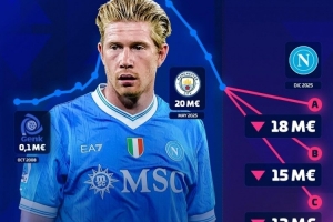 德轉(zhuǎn)預(yù)熱德布勞內(nèi)最新身價(jià)(目前2000萬(wàn)歐)