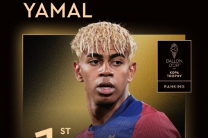 自2018年設(shè)立以來,科帕獎已頒發(fā)七屆,姆巴佩、德里赫特、佩德里、加維、貝林厄姆各獲得一次,亞馬爾獲兩次。
