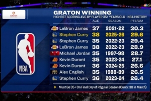 體育資訊12月19日訊 今天,勇士對陣太陽的比賽正在進行中,轉(zhuǎn)播方曬出了NBA歷史上,至少35歲(常規(guī)賽最后一個比賽日必須達(dá)到35歲)單賽季場均得分榜前9,具體如下: