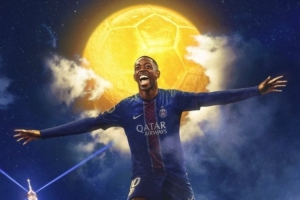 法甲官方曬出海報(bào)祝賀登貝萊,并配文:世界最佳球員效力于法甲,2025年金球獎(jiǎng)!奧斯曼-登貝萊!