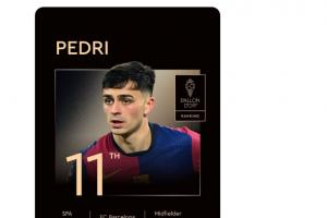 體育資訊09月23日訊 2025年金球獎獎項(xiàng)公布,巴薩中場佩德里排名第11,沒有進(jìn)入前十。