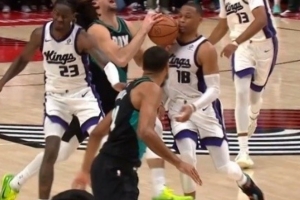 昨日NBA常規(guī)賽,開拓者加時(shí)134-133力克國王,加時(shí)賽最后時(shí)刻,阿夫迪亞強(qiáng)攻造成威少犯規(guī),兩罰全中完成絕殺。