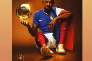 孔德社媒曬出登貝萊身穿法國球衣的照片,配文寫道:“恭喜我的兄弟登貝萊。”