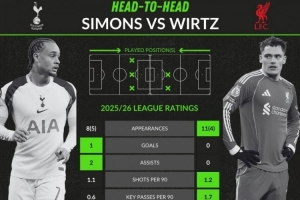 哈維·西蒙斯(熱刺):8次首發(fā)、5次替補(bǔ),1球、2助攻,場(chǎng)均1.1射門、0.6關(guān)鍵傳球、0.8過(guò)人、傳球成功率82.9%,獲評(píng)6.64分