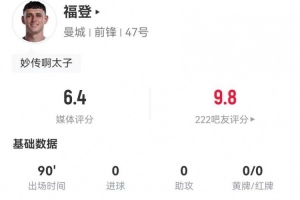 體育資訊12月21日訊 曼城在本輪英超3-0完勝西漢姆,福登本場數(shù)據(jù)如下: