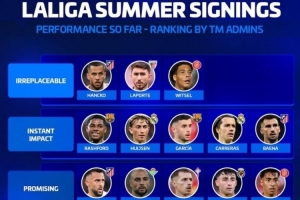 體育資訊12月21日訊 《轉(zhuǎn)會市場》列出了本賽季多位西甲新援,并根據(jù)表現(xiàn)為他們進(jìn)行了評級,拉什福德、赫伊森等5將獲評第2檔,阿諾德獲評第5檔。