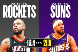 火箭生涯兩個(gè)賽季,場(chǎng)均13.4分3.5籃板1.7助攻0.8搶斷。
