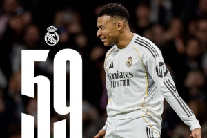 皇馬官方更新社媒動態(tài),曬出海報(bào)祝賀姆巴佩,配文:“姆巴佩追平了C羅自然年打進(jìn)59球的紀(jì)錄!”