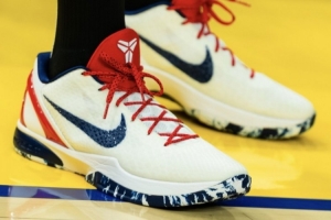 熱身階段,庫(kù)里上腳科比6代美國(guó)隊(duì)PE,美國(guó)國(guó)旗元素融入球鞋,清爽養(yǎng)眼。