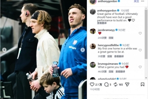 戈登賽后更新社媒動態(tài),曬出多張此役的照片,配文:“精彩的足球比賽,雖然最終本應(yīng)取勝,但這場的出色表現(xiàn)可以成為繼續(xù)進步的基石。”