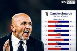 體育資訊12月22日訊 意大利天空體育曬出海報,對比了斯帕萊蒂和圖多爾的數(shù)據(jù)。
