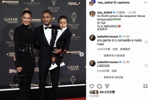體育資訊9月23日訊 拉菲尼亞妻子更新社交媒體,曬出與丈夫等攜手參加金球獎(jiǎng)?lì)C獎(jiǎng)典禮的相關(guān)動(dòng)態(tài)。