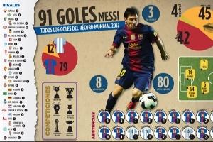 2012年12月22日,梅西在巴薩3-1巴拉多利德的比賽中破門,打進(jìn)自己在2012年的第91球,以69場(chǎng)91球的數(shù)據(jù)超過蓋德-穆勒6球,刷新足壇歷史自然年進(jìn)球紀(jì)錄。在那年的比賽中,梅西還送出了24次助攻。