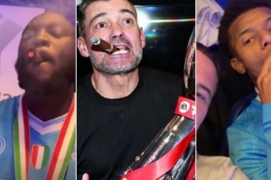 體育資訊12月23日訊 在那不勒斯奪得意大利超級杯冠軍后,盧卡庫、內(nèi)雷斯抽雪茄慶祝。