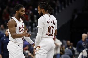 上半場比賽,騎士后場雙槍米切爾和加蘭發(fā)揮不錯,進(jìn)攻端里突外投都效率在線,其中米切爾12中6,三分7中4,罰球2中2砍下18分3籃板5助攻;加蘭10中6,三分4中3,罰球2中2拿到17分3籃板4助攻1搶斷。