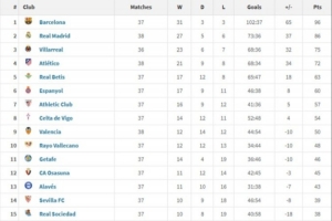 體育資訊12月23日訊 2025年度至今,巴薩在少賽一場的情況下取得31勝3平3負(fù)積96分位列西甲榜首,皇馬以27勝5平6負(fù)積86分排名第二,排名第三和第四的分別是比利亞雷亞爾和馬競。