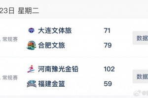 合肥文旅79-71大連文體旅,約翰遜獨得23分7籃板6助攻,納雷德18分8籃板,卡耶10分。大連女籃庫珀23分,李雨萌16分,付金秋11分6籃板。