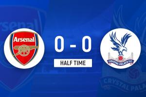 上半場(chǎng)補(bǔ)時(shí)2分鐘。半場(chǎng)戰(zhàn)罷,阿森納0-0水晶宮。