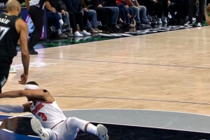 GIF-戈貝爾和哈特?fù)尰@板對抗激烈 哈特倒地后扒拉了一下戈貝爾膝蓋引發(fā)沖突