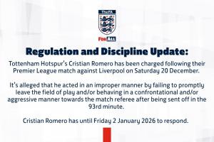 體育資訊12月25日訊 英超第17輪熱刺vs利物浦補(bǔ)時(shí)階段,羅梅羅因被犯規(guī)后的報(bào)復(fù)動(dòng)作被出示第二張黃牌,被罰下場。剛剛英足總發(fā)布公告,稱羅梅羅在紅牌后存在不當(dāng)行為。