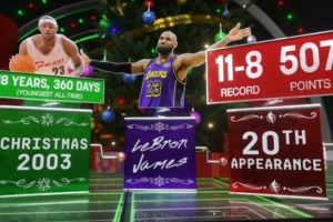 在2003年圣誕節(jié),年僅18歲360天的詹姆斯首次亮相圣誕大戰(zhàn),成為NBA歷史上出戰(zhàn)圣誕大戰(zhàn)最年輕的球員!