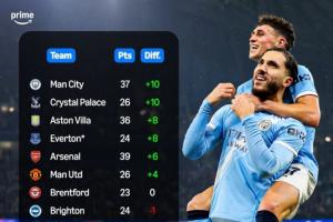 體育資訊12月25日訊 英超前17輪過(guò)后,轉(zhuǎn)播商亞馬遜統(tǒng)計(jì)了英超20隊(duì)本賽季相較上賽季圣誕節(jié)時(shí)(當(dāng)時(shí)為16輪)的積分差距。