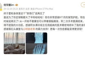 體育資訊12月25日訊 今日,國(guó)安球員何宇鵬更新社媒,社媒顯示他于今日摘除了用于固定左足第五跖骨的鋼板。