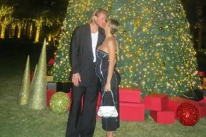 在圣誕樹下迪萊塔·萊奧塔與卡里烏斯甜蜜親吻,圖中可以看到迪萊塔·萊奧塔的小腹隆起明顯。本月卡里烏斯妻子宣布已懷上二胎,兩人將迎來第二個(gè)孩子。
