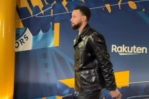 本場比賽賽前,庫里穿著阿發(fā)的經(jīng)典鞋款Reebok Question來到球館。