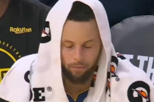 GIF-勇士失誤被打反擊2+1 庫里在替補(bǔ)席無奈