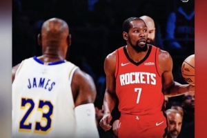 火箭前鋒杜蘭特在賽后采訪中談到與詹姆斯的交鋒時(shí)說道:“我對(duì)于我們之間的每次交手都心懷感恩。”