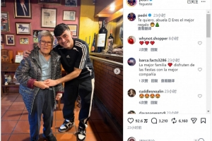 體育資訊12月27日訊 巴薩中場佩德里更新社媒動態(tài),曬出與奶奶的合照。