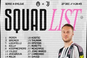 體育資訊12月27日訊 北京時(shí)間明天凌晨,尤文將在意甲第17輪比賽中客場(chǎng)對(duì)陣比薩,尤文公布了此役的球員名單。孔塞桑、卡巴爾、魯加尼、弗拉霍維奇缺席。