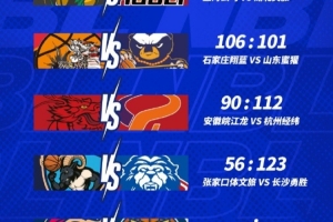 NBL常規(guī)賽第三輪今日戰(zhàn)罷,石家莊翔藍106-101險勝山東蜜獾,安徽皖江龍90-112不敵杭州經(jīng)緯,張家口體文旅56-123不敵長沙勇勝。