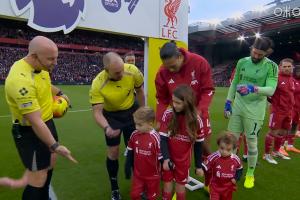 體育資訊12月27日訊 利物浦vs狼隊賽前,若塔的兩個孩子作為球童入場。