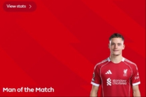 體育資訊12月28日訊 2025-26賽季英超聯(lián)賽第18輪,利物浦2-1戰(zhàn)勝狼隊,本場首發(fā)出戰(zhàn)的維爾茨賽后當選全場最佳。