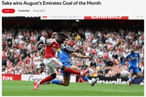 體育資訊9月11日訊 阿森納官方消息,薩卡對陣?yán)澛?lián)的抽射破門當(dāng)選8月隊內(nèi)最佳進球。
