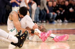 在更衣室里,塔圖姆被他的訓(xùn)練師和母親布蘭迪-科爾包圍著,他無法得到安慰:“我真的坐在那里哭了兩個小時,因為我的腦海里閃過無數(shù)念頭:‘天啊,我的職業(yè)生涯結(jié)束了嗎?我會被交易嗎?所有的合作伙伴都會拋棄我嗎?’我的籃球生涯在我眼前閃現(xiàn),”他說,“我正處于巔峰時期,是世界上最好的籃球運動員之一,但感覺這一切都被奪走了?!?/p>
