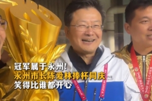 體育資訊12月28日訊 2025“湘超”決賽,永州隊(duì)1-0擊敗常德隊(duì),奪得冠軍。據(jù)“風(fēng)芒新聞”報(bào)道,賽后永州市長陳愛林捧杯。