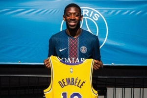湖人官方曬照送上祝賀:“祝賀奧斯曼-登貝萊榮獲2025年金球獎??!”
