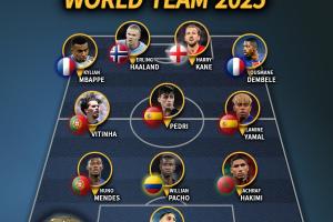 體育資訊12月28日訊 IFFHS(國際足球歷史和統(tǒng)計(jì)聯(lián)合會(huì))近日公布了2025年年度最佳陣容評(píng)選結(jié)果,姆巴佩、哈蘭德、凱恩、登貝萊等11人入選。