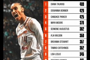 水星球員德萬娜-邦納在比賽第四節(jié)快攻上籃得手,至此,她超越坎迪斯-帕克,排名WNBA歷史季后賽命中數(shù)第二。榜單前三如下: